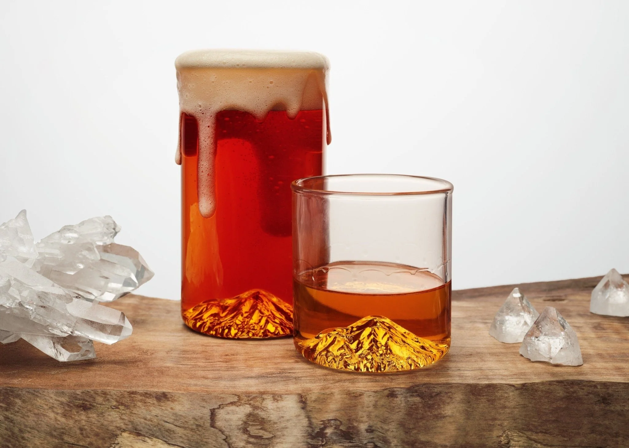 The ultimate Mt. Shasta gift. Our pre-packed box set includes 2 Mt. Shasta Pints, 2 Mt. Shasta Tumblers and 4 Mt. Shasta coasters. All of this can be packaged in a custom made solid pine box with a laser etched plywood slide top lid.